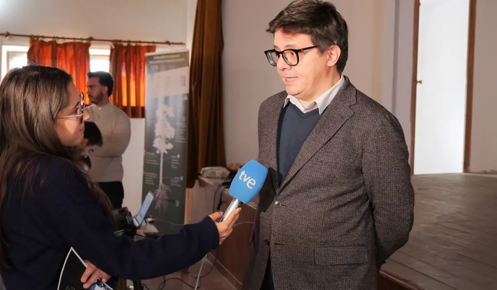 El segundo bloque de la jornada estuvo centrado en los proyectos COMTE Bosque Innova, beneficiarios del programa de valorización de la FGCSIC que impulsa y acelera iniciativas innovadoras para convertir sus resultados en propuestas concretas con impacto económico y social. Todos ellos proponen soluciones pioneras que combinan sostenibilidad, tecnología y aprovechamiento de recursos locales: Álvaro Tarancón (Nemétona) habló sobre construcciones en madera técnica (GLT y CLT) con Pinus nigra; Jaime de Andrés e Isidro Sobrino (EcoMind Wetlands) mostraron cómo los humedales artificiales con inteligencia artificial pueden depurar aguas en zonas rurales; y Carmen Mena y Sebastián Latorre (Apis Ibérica) presentaron colmenas inteligentes equipadas con sensores IoT, drones e IA para mejorar la apicultura y la biodiversidad.